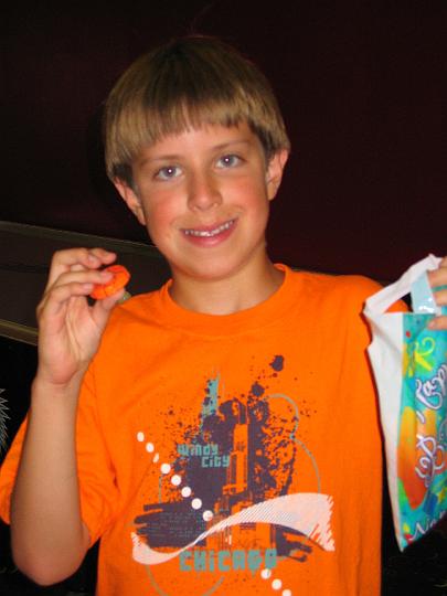 Jacob checks out the goody bag.