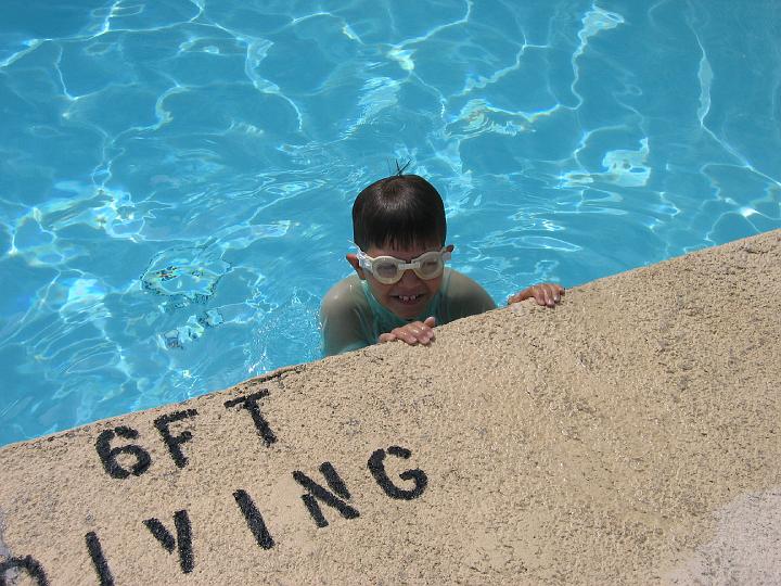 | Billy thinks about exiting the pool. |